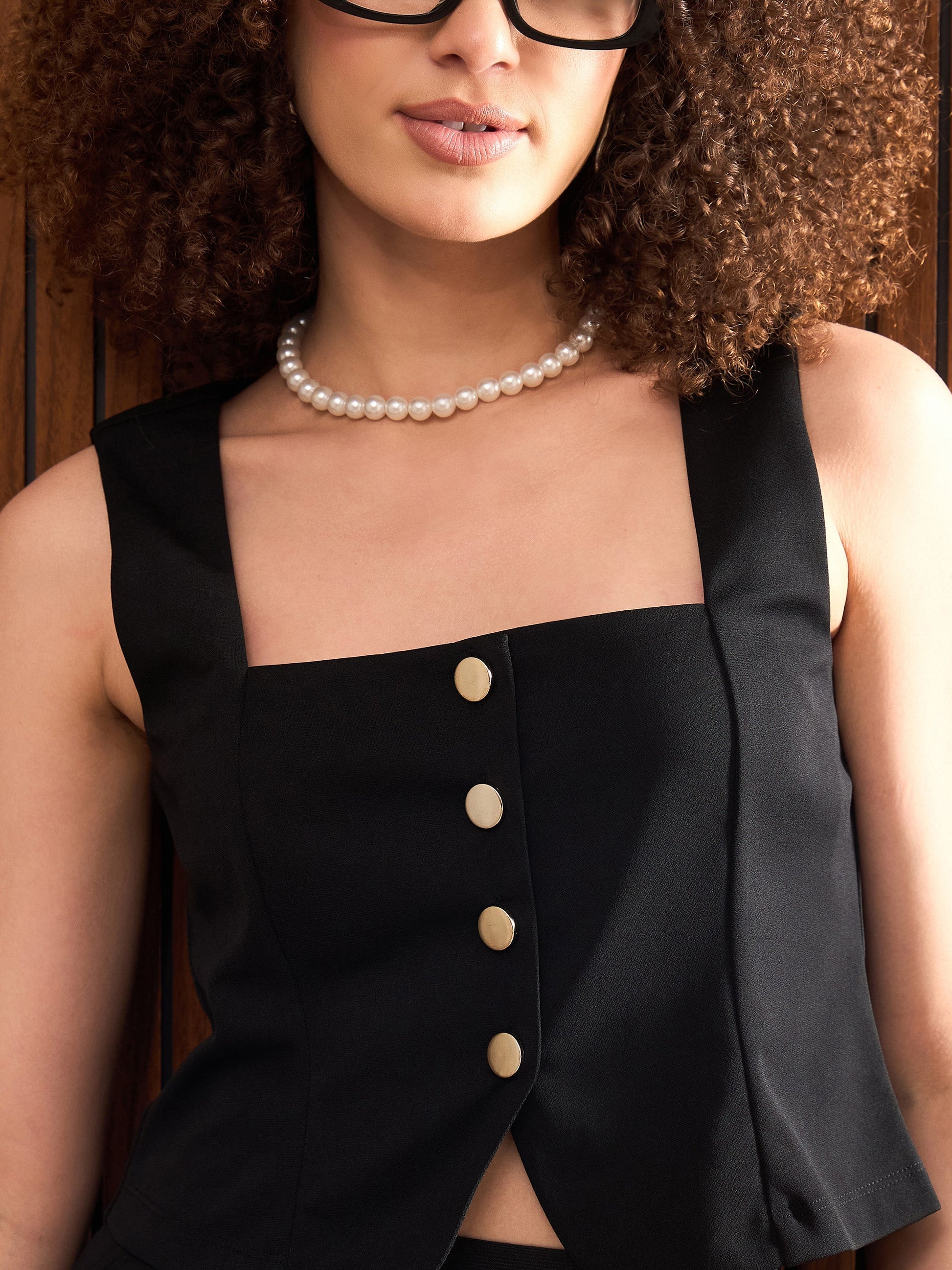 Women Black Button Down Top With Elasticated Pants