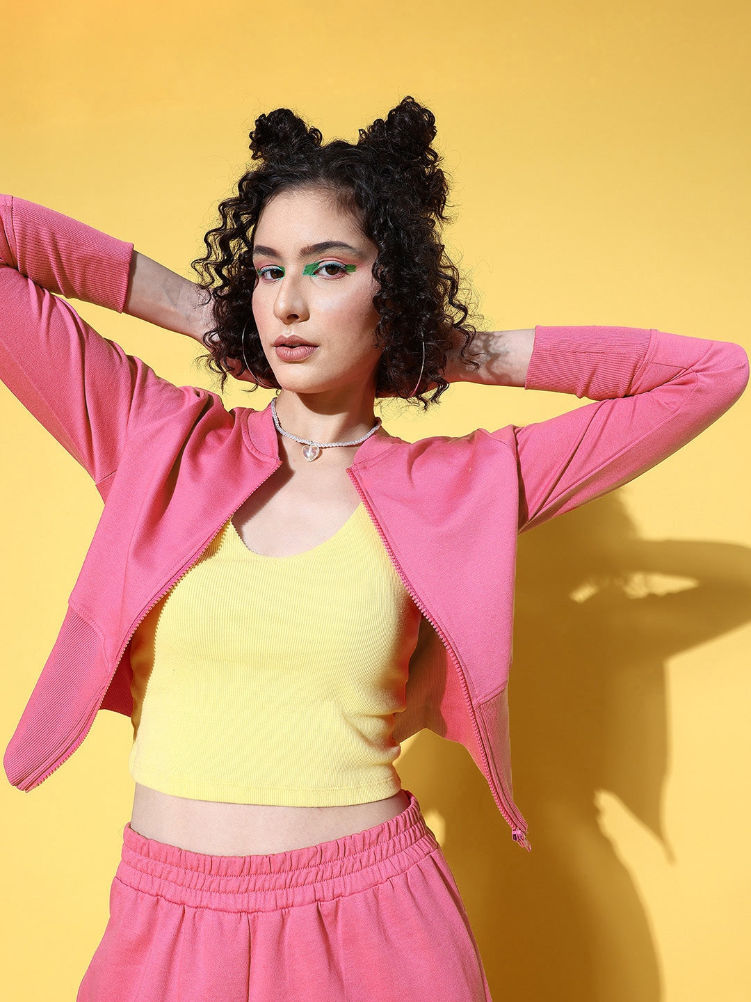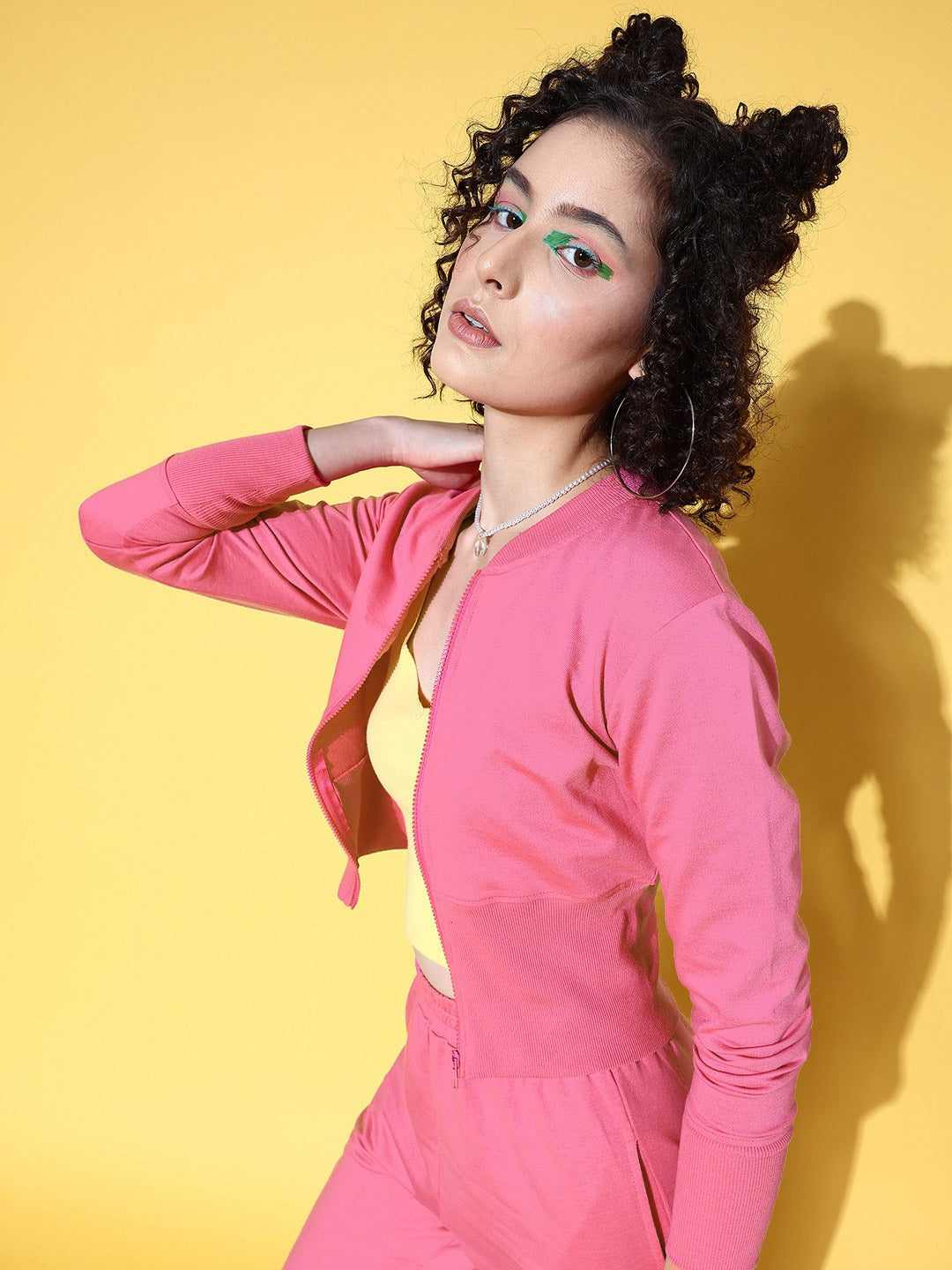 Women Pink SASSAFRAS Studded Print Crop Jacket